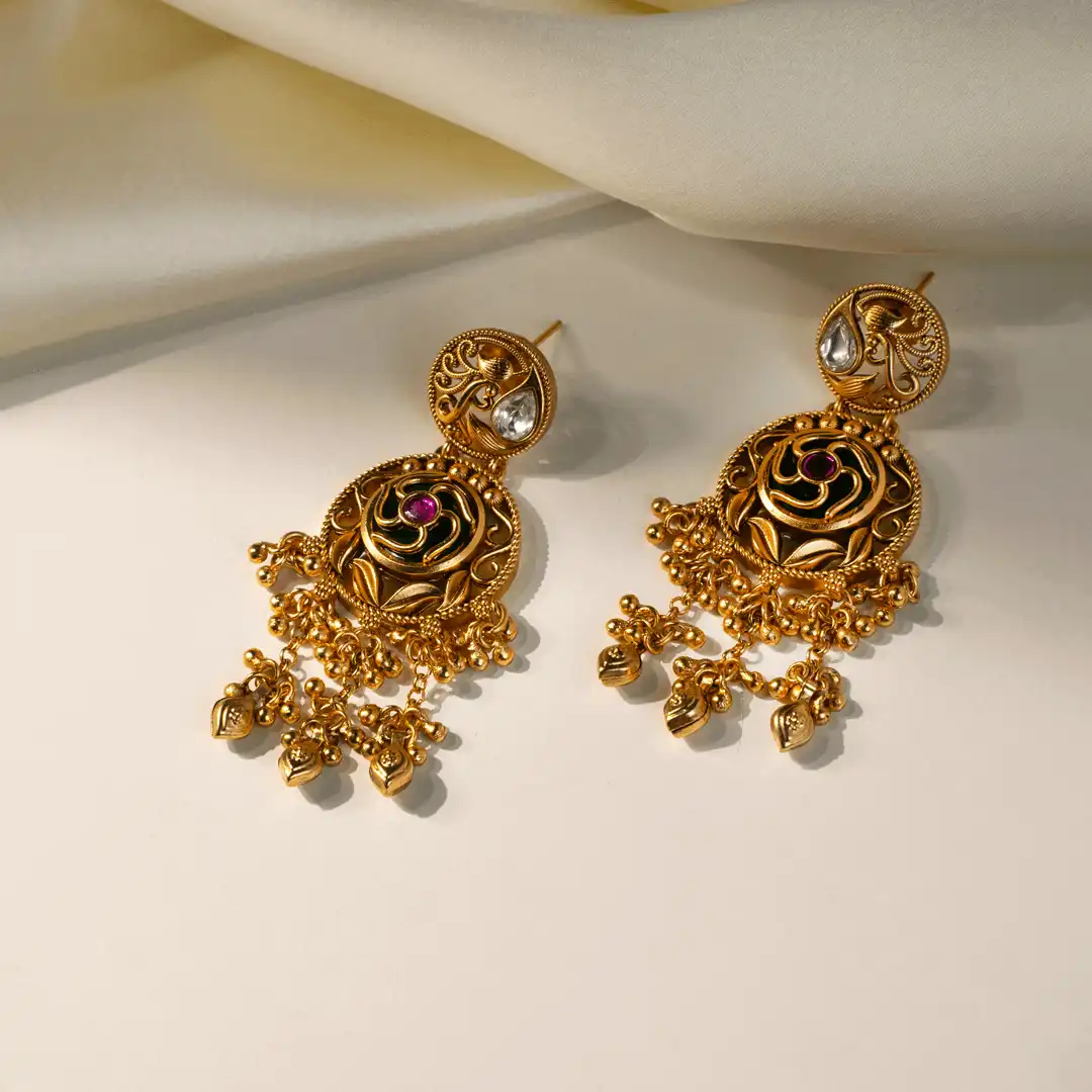 Paired with matching statement earrings that echo the same ornate detailing and dangling elements, Devika is designed to command attention—making it an exquisite choice for weddings, festive occasions, and traditional celebrations.