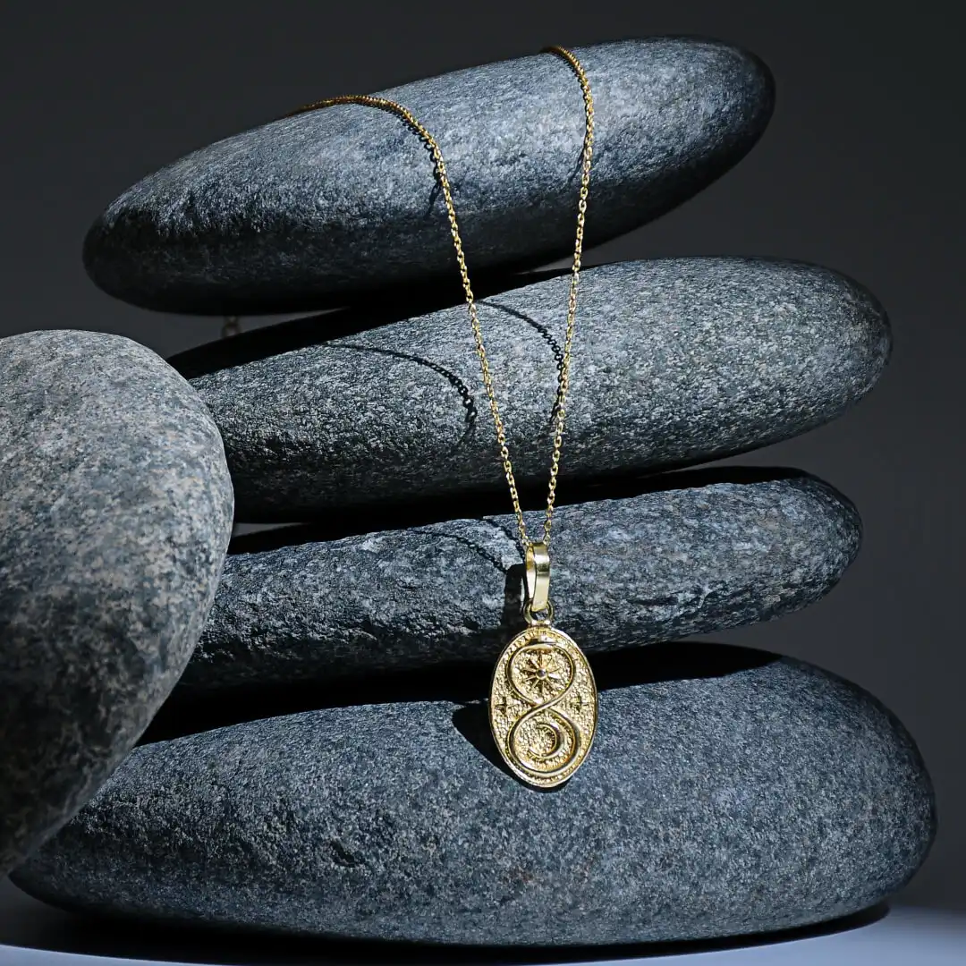 Handcrafted in brass with high-quality gold plating, this pendant stands for limitless possibilities and personal resilience. Wear it solo for a minimal statement or layer it with your favorite chains to elevate any outfit.