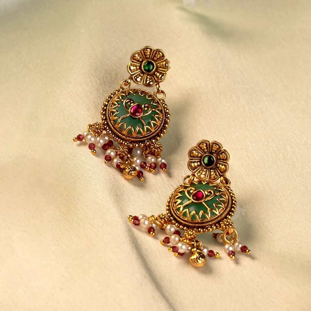 Work: Meenakari enamel detailing with kundan style stone accents and bead embellishments