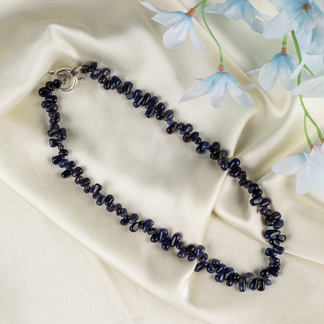 Elegant yet effortlessly wearable, Neelara brings a sense of calm sophistication to everyday styling. The deep blue palette pairs beautifully with whites, ivories, denims, cotton sarees, and Indo-western silhouettes. Whether worn solo or layered, this piece adds depth, character, and a refined natural-stone charm.