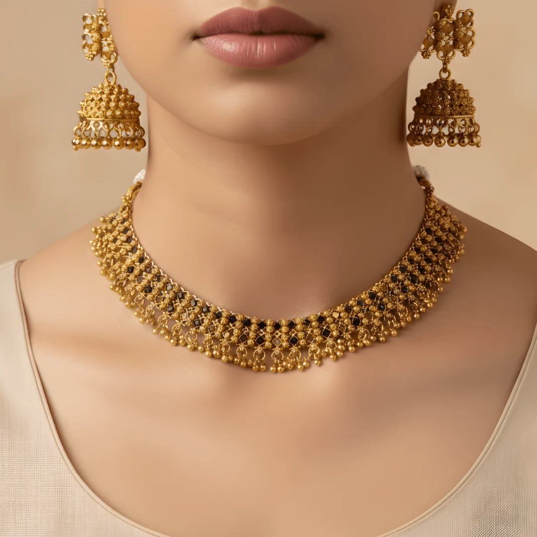 Set Includes: Choker Necklace + Matching Jhumka Earrings