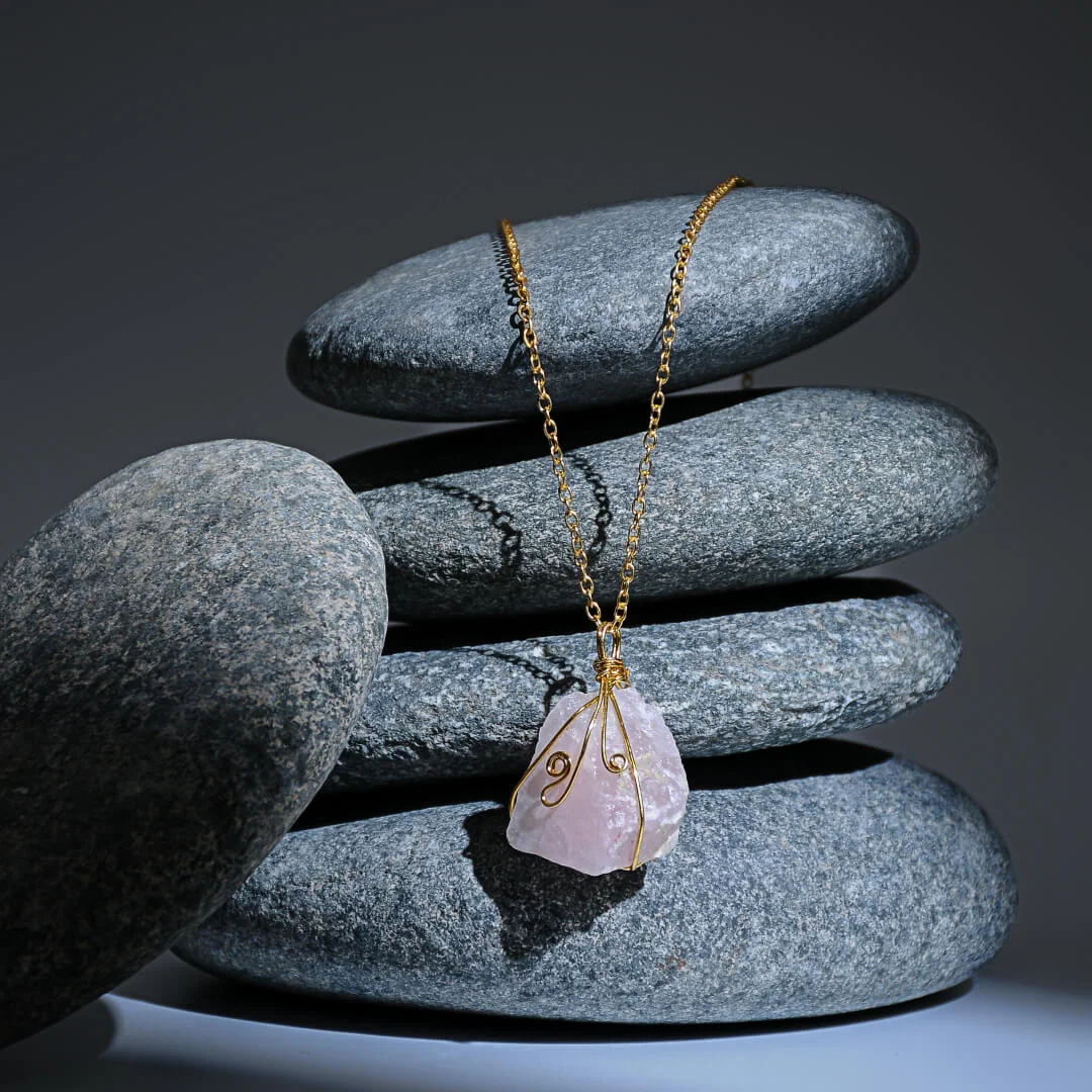 Zaria captures the quiet magic of raw moonstone in a refined, modern design. The pendant features an uncut moonstone wrapped with delicate gold-toned wirework that enhances its natural shimmer and organic silhouette. Each moonstone carries its own soft glow and irregular texture, making every piece beautifully unique.