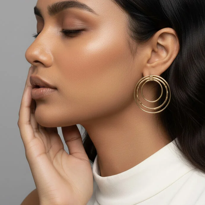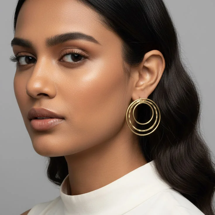 The polished concentric hoops catch light beautifully, making Zora a versatile accessory that blends effortlessly with Indian and Western outfits alike.